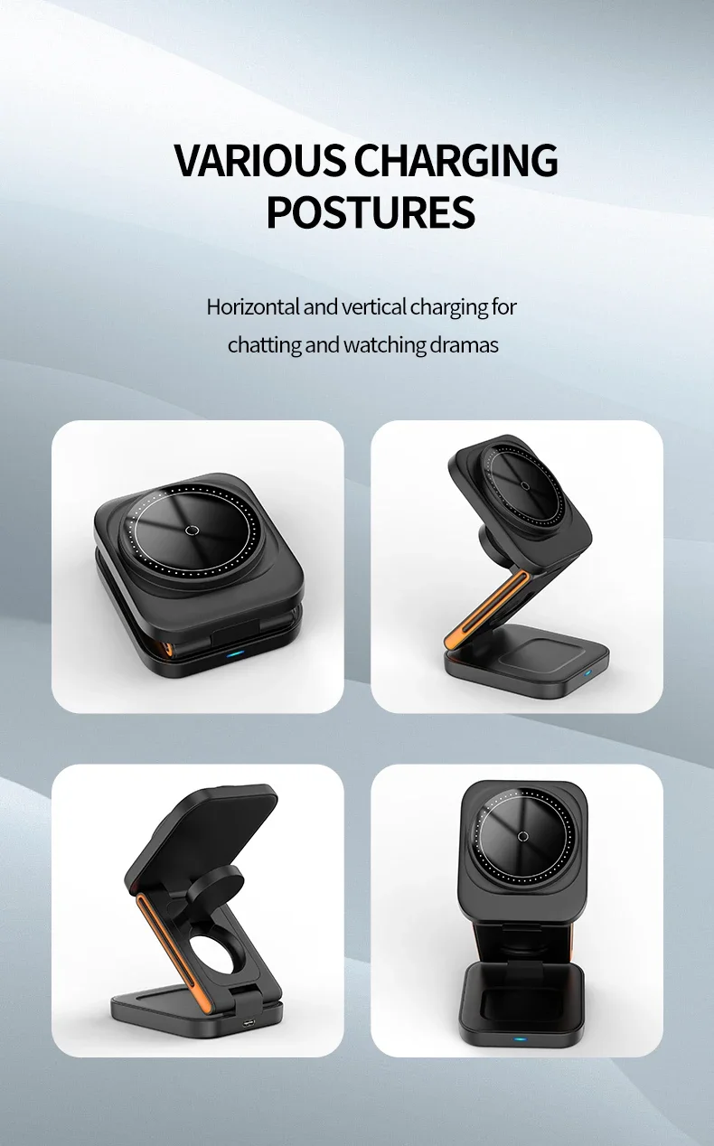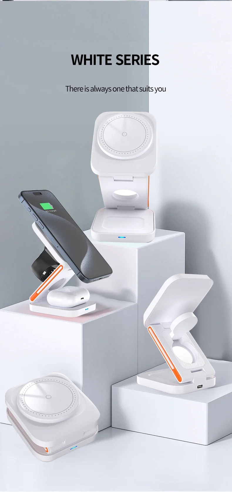 3 in 1 Foldable Charging Station Fast Magnetic Wireless Charger Stand