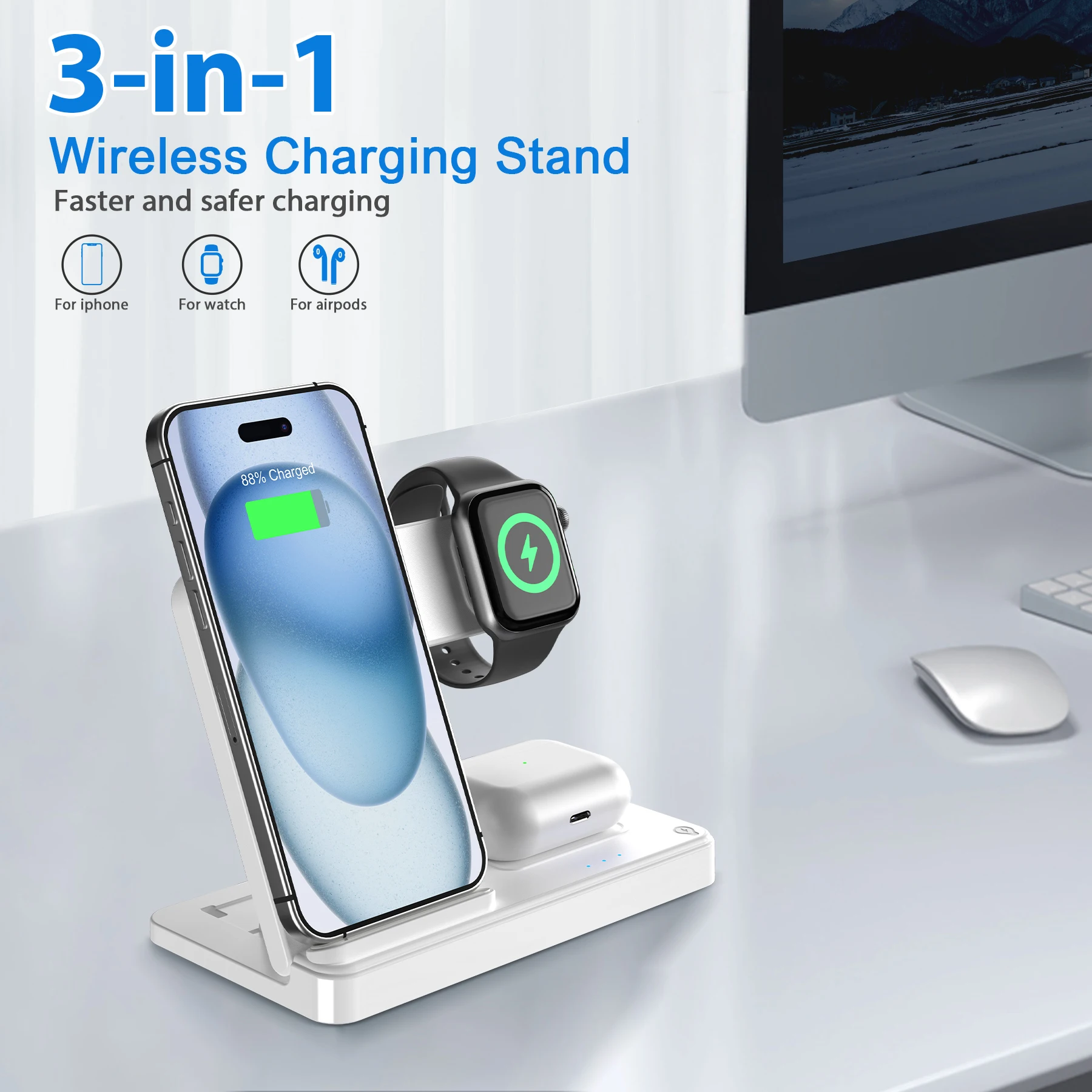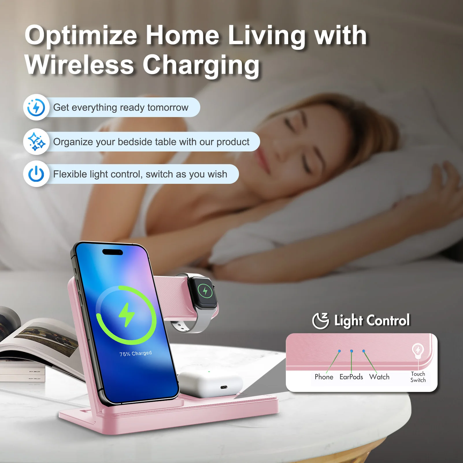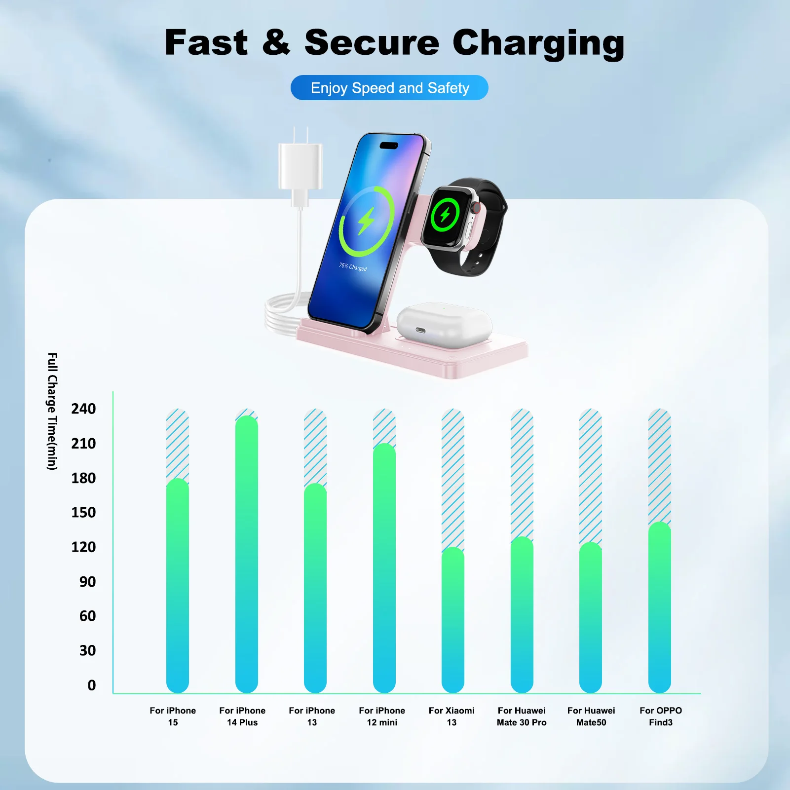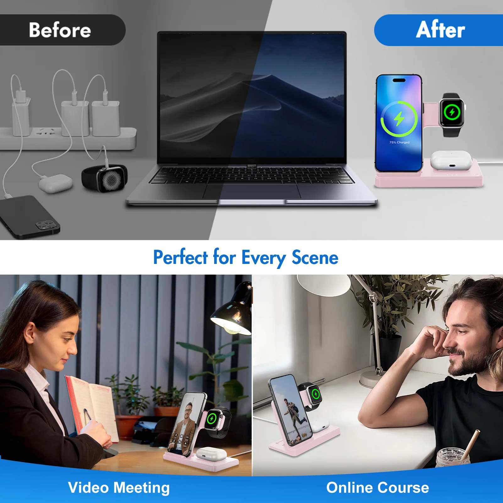 3 In 1 Magnetic Wireless Charger Stand Fast Charging Dock Station Multiple Devices