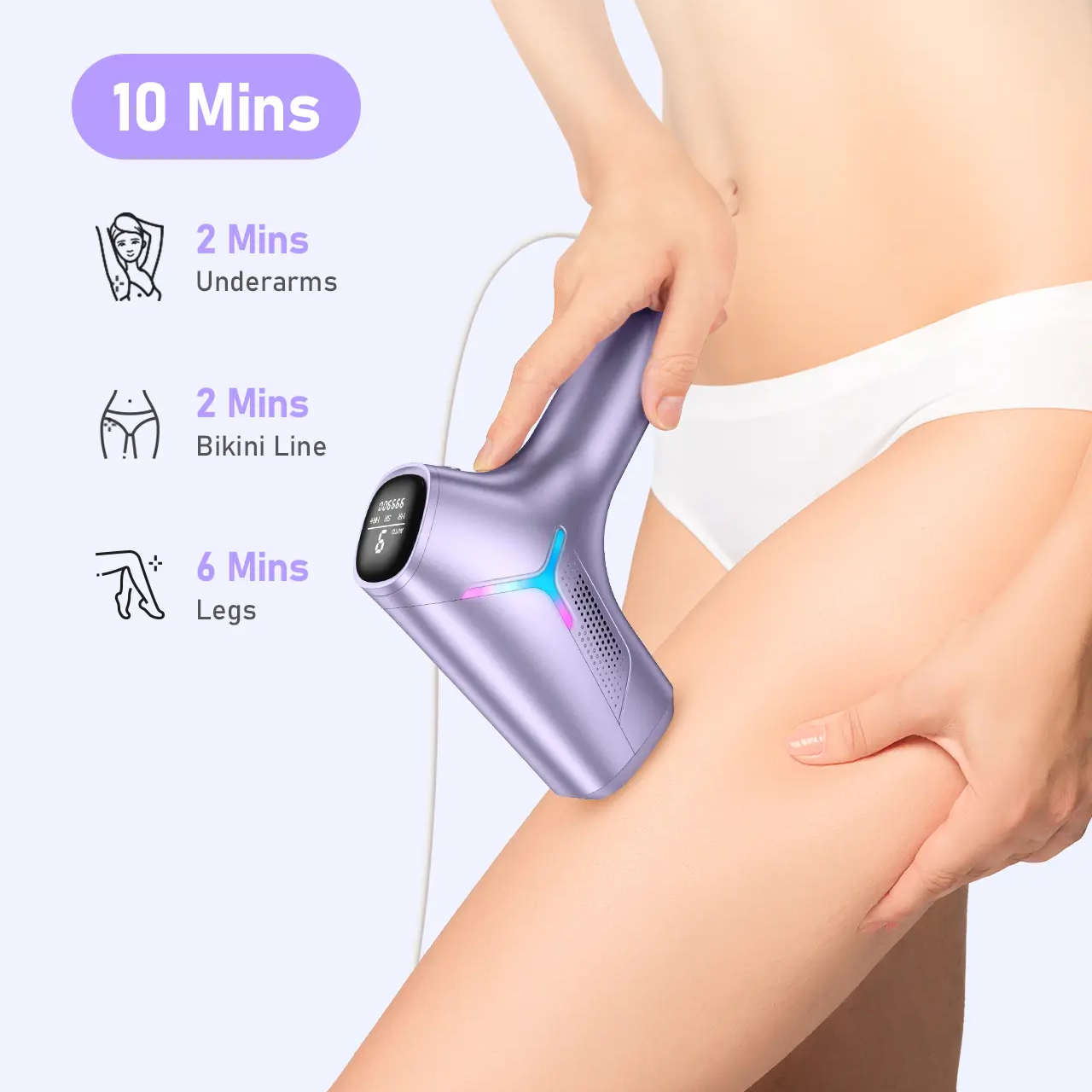 Epilator Type:Laser Power Source:Electric Material:ABS Color:Lavender,White Size:19x8x19cm Type:Epilator..