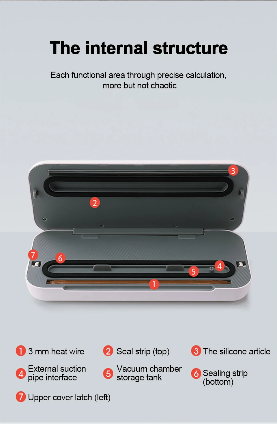 Food Vacuum Sealer Machine Plastic Packaging Sealer Kitchen Food Storage Containers for Food Preservation